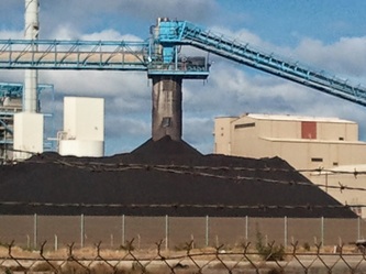 and boom to a series of conveyor belts that carry it to a hopper and